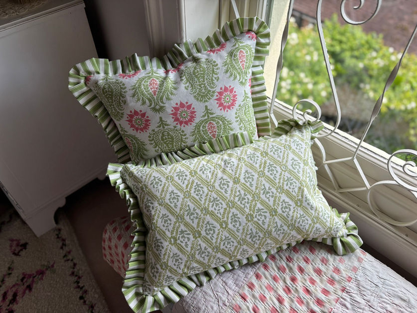 At Queenie & Judge, we specialise in luxury handmade cushions crafted in Kent using the finest designer fabrics. Our bespoke cushion covers feature timeless designs from iconic names such as William Morris, Morris & Co, Designers Guild, Schumacher, Clarke & Clarke, and Sanderson.
